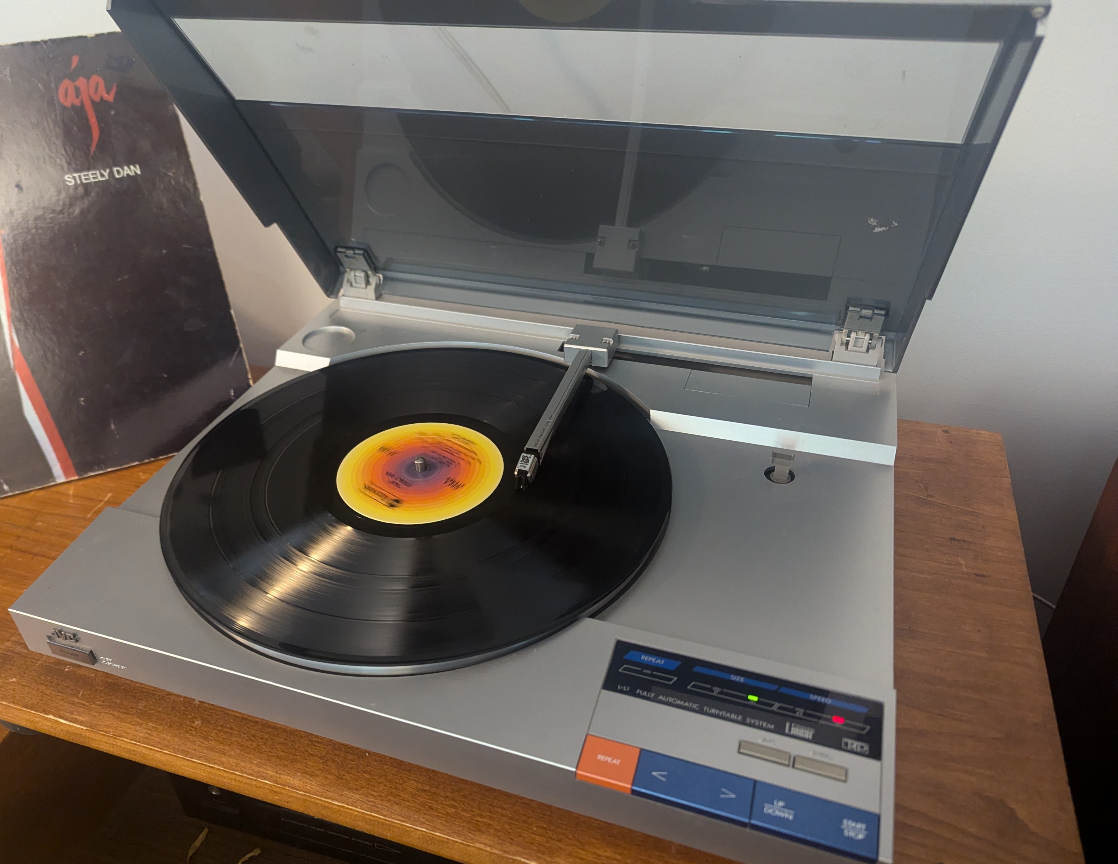 For me, a quartz lock direct drive Technics deck is the gold standard for accurate playback. Being fully automatic is a bonus (it is very easy to get spoiled by dropping a record on the platter and pushing one button to get the music started). This circa 1984 player comes equipped with arguable the best p-mount cartridge around, the Pickering TLE. This is an accurate and very reliable turntable in great shape with a nice dust cover.