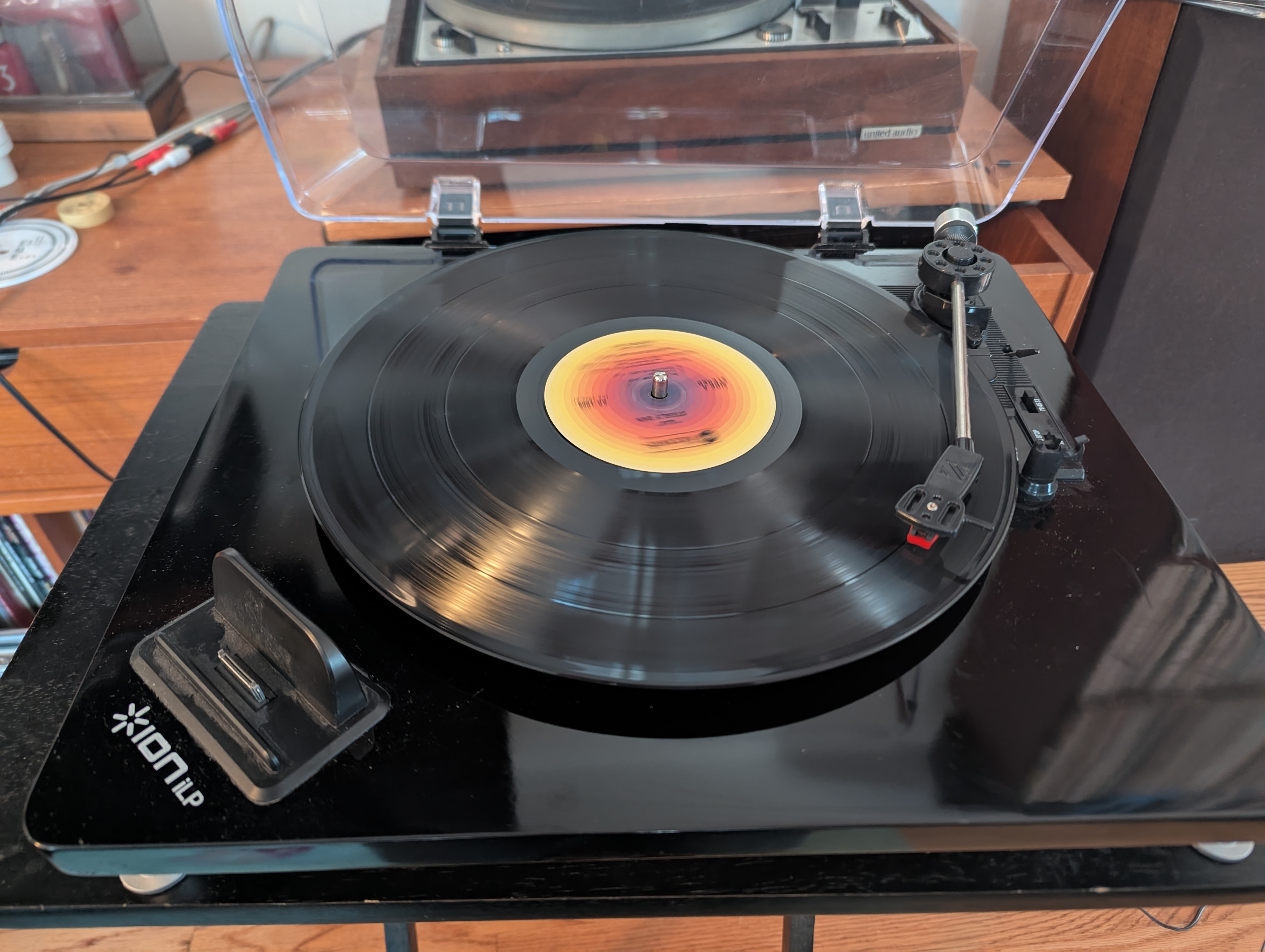 Nothing screams early 2000s like an iPod dock. Completely useless at this point (why was it even on there to begin with?!?) but the turntable is still a working turntable. In very nice shape, with a Chuo Denshi CZ800 ceramic cartridge (the kind found the Crosleys and their clones). No warranty on this, but if there are any unfixable issues within a year of purchase, I’ll refund the cost.
