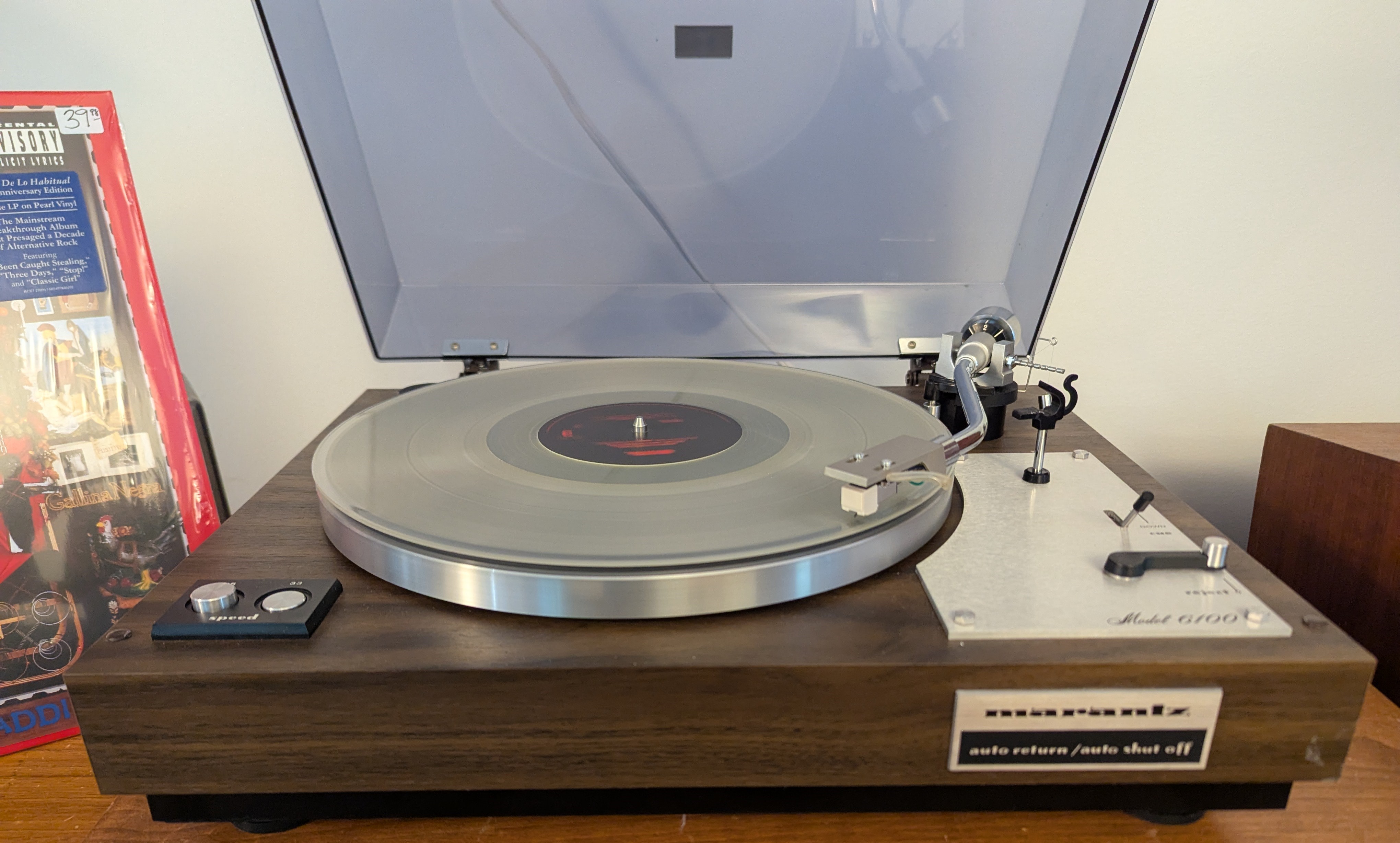 Semi-automatic, belt drive from the classic Marantz era. Has one small ding in the right front corner (visible in the pic), otherwise in gorgeous shape. Comes equipped with an Audio Technica cartridge and sounds excellent. Collectors are nuts about Marantz gear so you know it’ll hold it’s value.